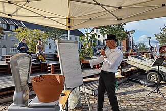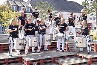 De var umiskendelige og ikke til at overse: I strålende solskin den 28. august trak Flensborgs samba-trup ”Policia do Samba” flere hundrede lokale borgere og gæster til formidlingshaverne i ca. to timer om eftermiddagen i Flensborg havn. Interreg-projektet"Blomster bygger broer" havde inviteret til en farverig parade på havnen, hvor projektets formidlingshaver var i centrum. Den 10 mand store samba-gruppe blev ledsaget af den kendte klovn Onkel Balonkel, som især tiltrak sig opmærksomhed blandt de yngste med farverige balloner og gigantiske sæbebobler.